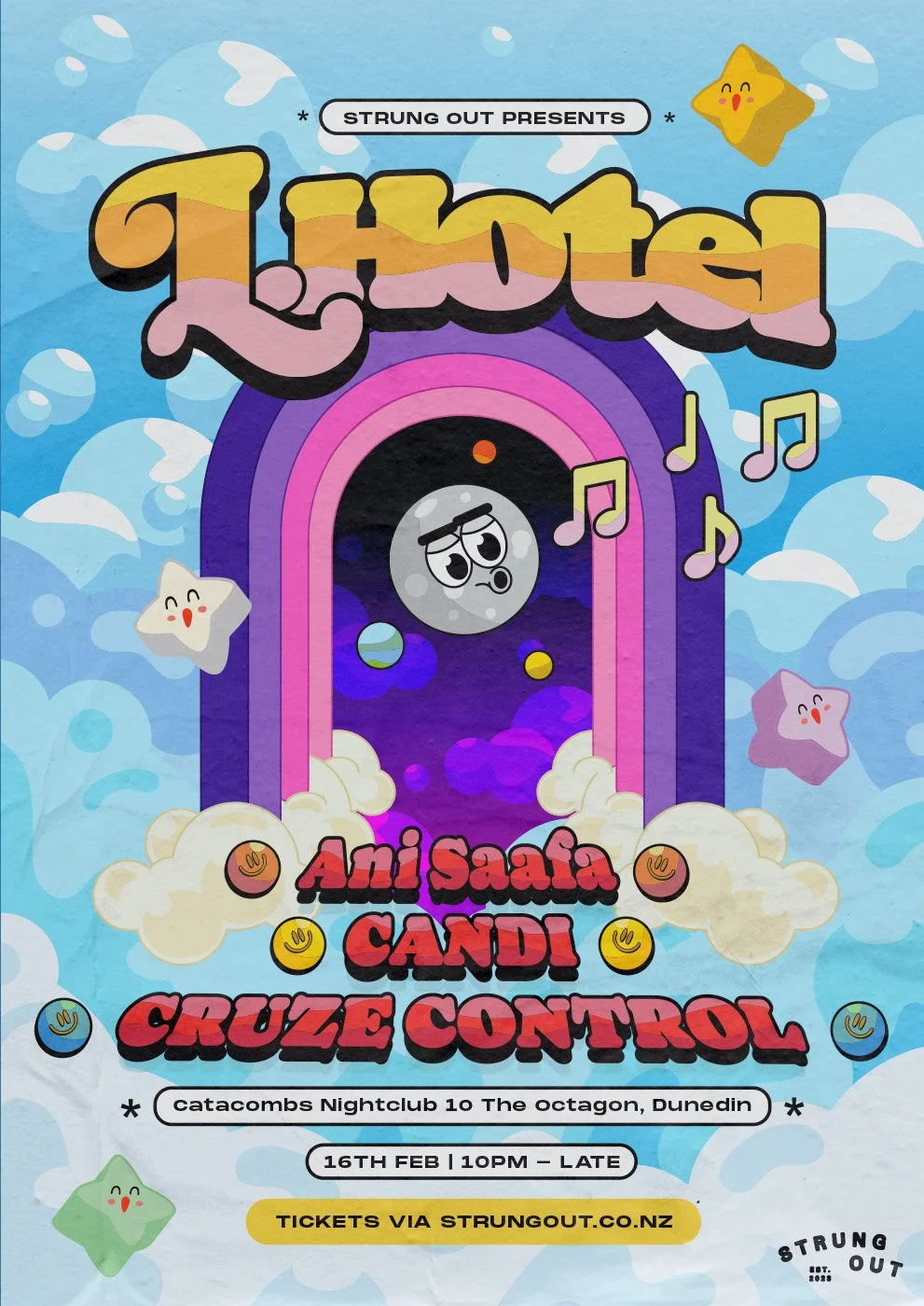 This ongoing collaboration with Common People not only allowed me to express alternative design but also contributed to building a vibrant night life culture in Dunedin, where good vibes, diverse music, and inclusivity are at the core of the brand.